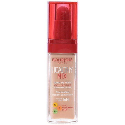 HEALTHY MIX Foundation de Bourjois est un fond de maquillage fluide qui remplit notre teint de radiance. Celui-ci semble plus lumineux et unifié depuis sa première application.